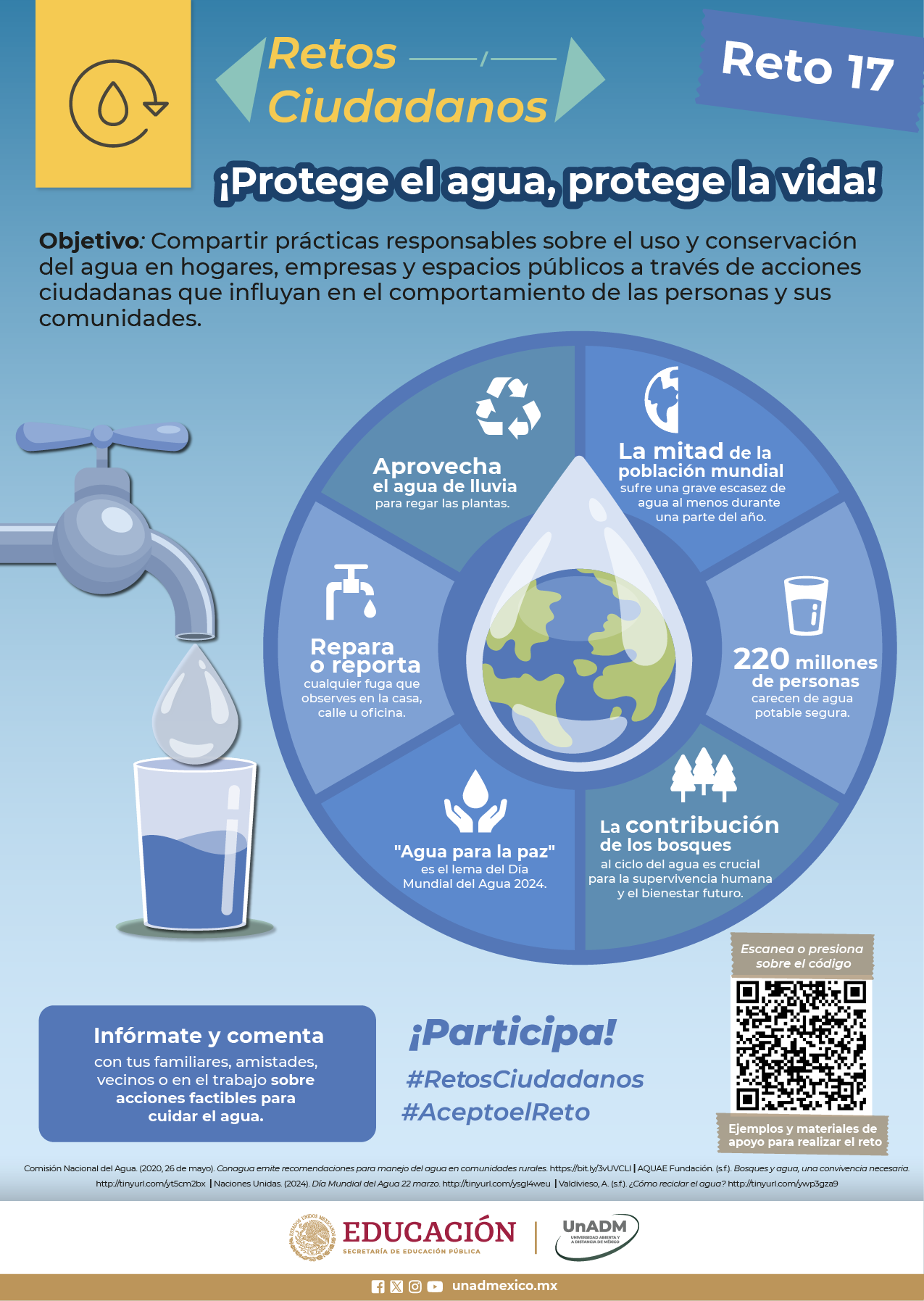 Para empezar el año, retomamos los retos ciudadanos y comenzamos con un desafío pertinente para los tiempos en que vivimos. El objetivo del Reto 17 es compartir prácticas responsables sobre del uso y la conservación del agua en hogares, empresas y espacios públicos, a través de acciones ciudadanas que influyan en el comportamiento de las personas y sus comunidades.