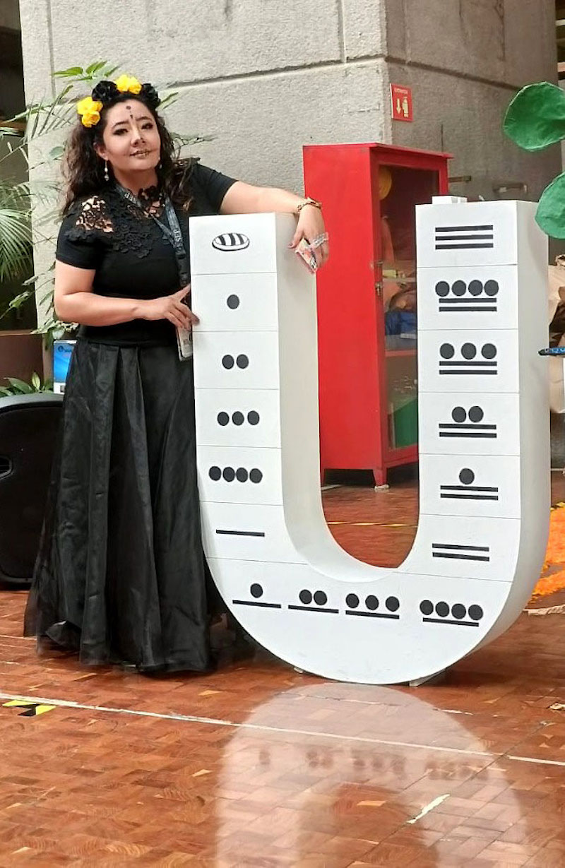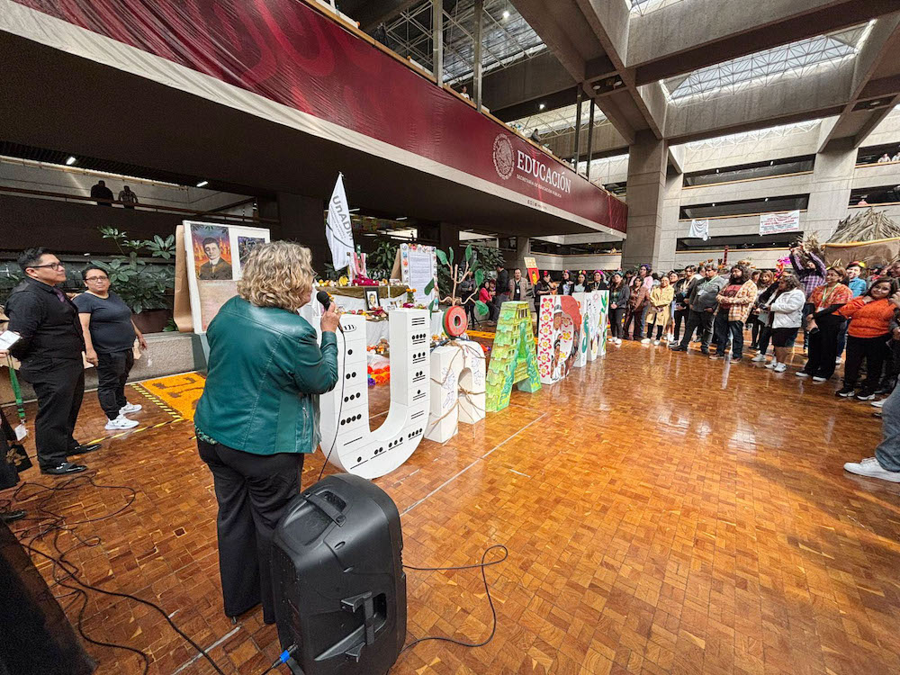 El legado cultural de Carrillo Puerto se vio reflejado en la ofrenda de la Universidad Abierta y a Distancia de México, pues los volumétricos de las siglas de nuestra universidad fueron intervenidos por integrantes de nuestra comunidad universitaria.